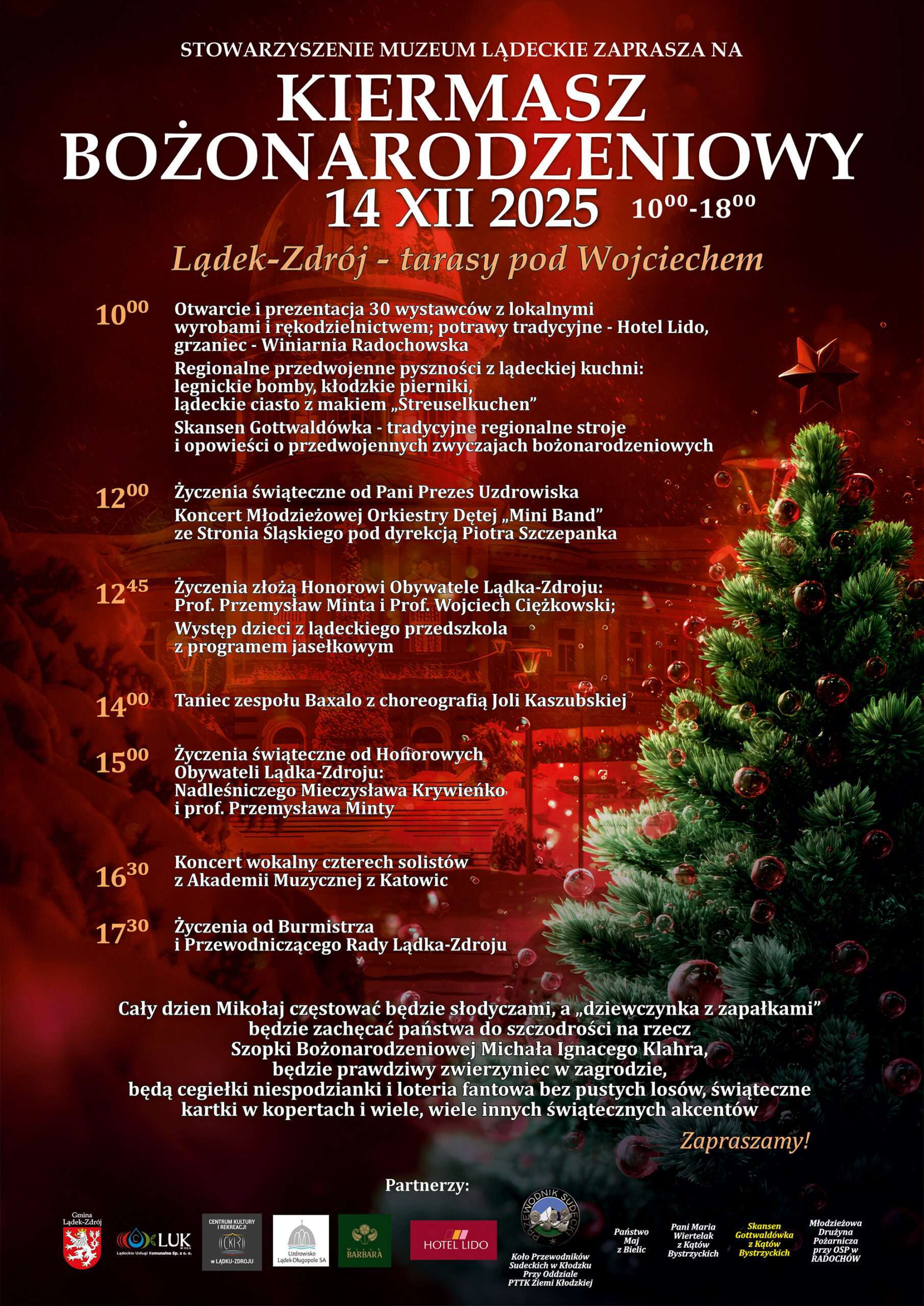 Lokalizacja Park Zdrojowy Park Zdrojowy im. Jana Pawła II, Lądek-Zdrój Kategoria Kuchnia Muzyka Produkt lokalny Spotkania Data 14 12 2025 Ongoing... Czas All Day Kiermasz Bożonarodzeniowy Poleć to wydarzenie X + Dodaj do Google Calendar