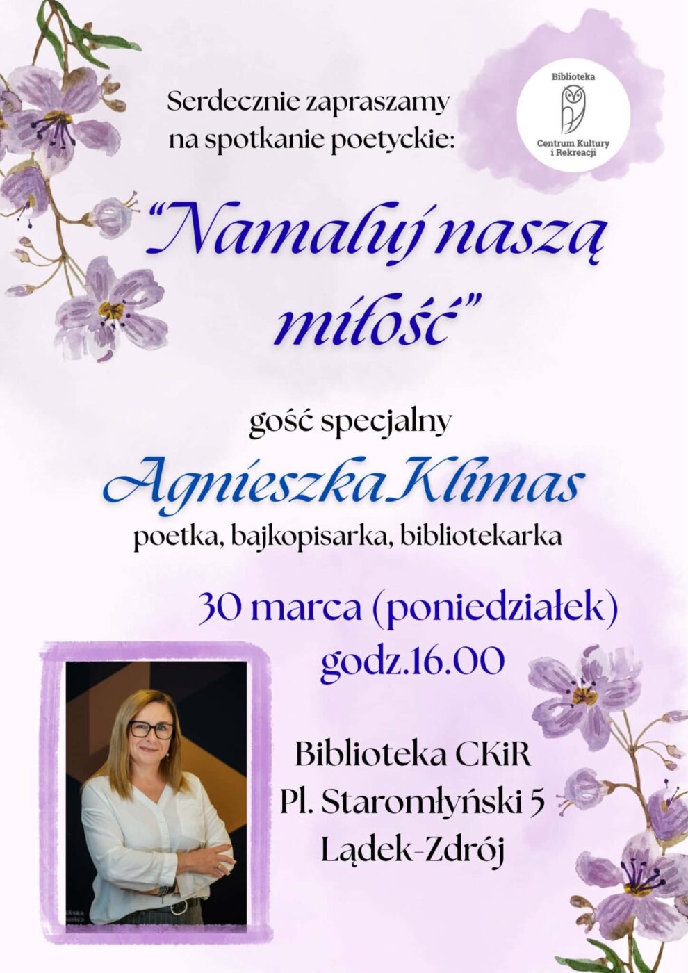 Biblioteka CKiR zaprasza serdecznie na spotkanie poetyckie z Agnieszką Klimas