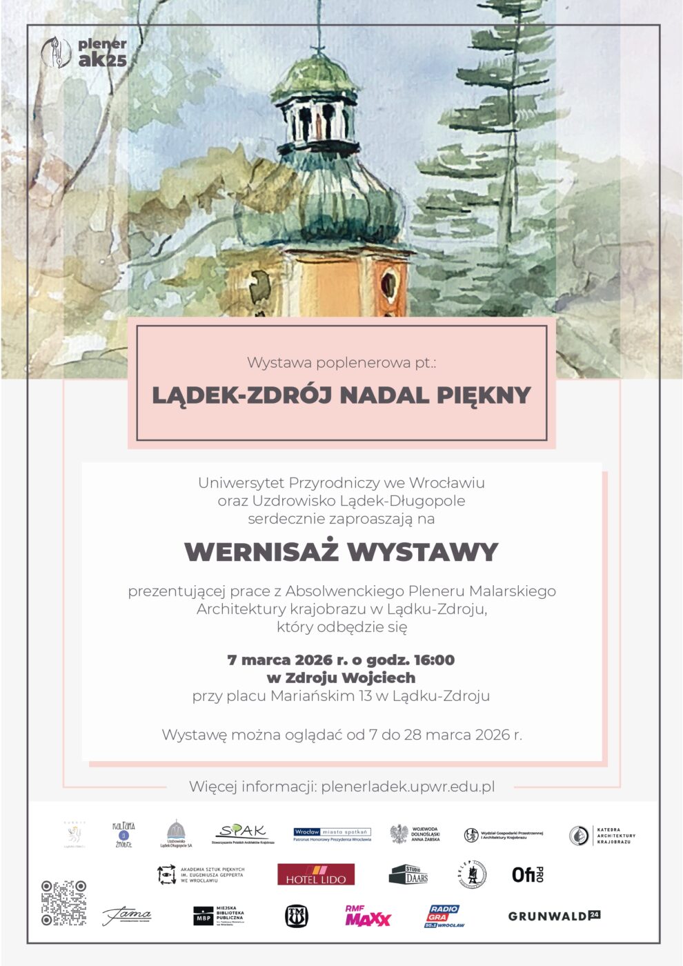 Zapraszamy na wernisaż pierwszej wystawy Absolwenckiego Pleneru Malarskiego w Lądku-Zdroju – wydarzenia towarzyszącego Jubileuszowi 25-lecia Architektury Krajobrazu Uniwersytetu Przyrodniczego we Wrocławiu.